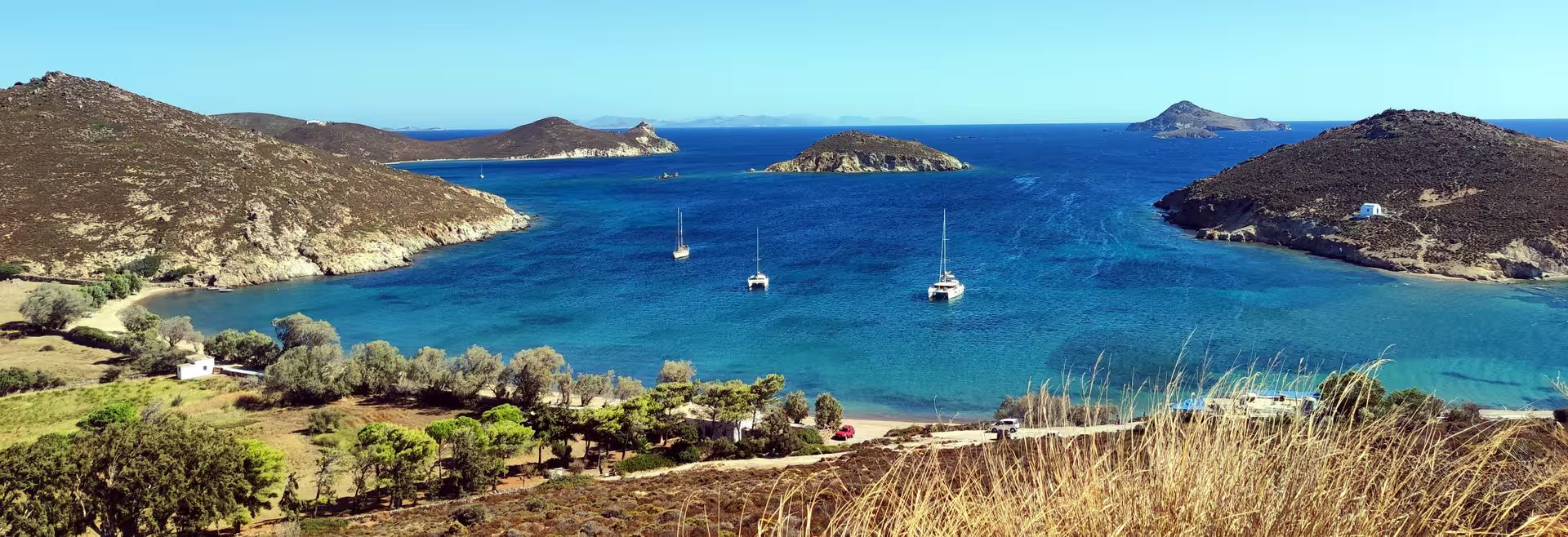 Vathý Pigádi - Βαθύ Πηγάδι is Greek for “deep well”, referring to a waterwell or spring, and is the tiny bight opposite Palos – a lunch-stop anchorage in light weather.